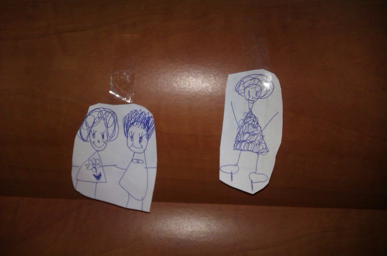 "Папочка! На первом рисунке - это ты с мамой на свадьбе, когда вы поженились. Ты же рассказывал нам. А на втором - просто мама в красивом платье."