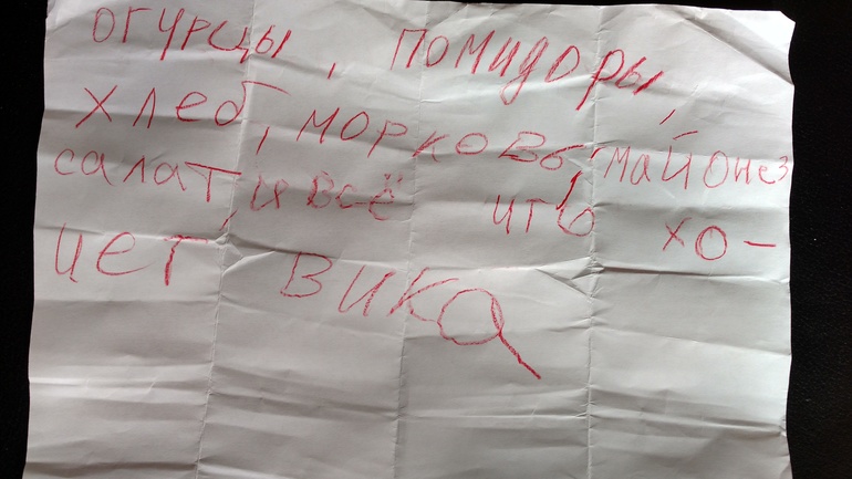 Дети едут со мной в магазин. Викушка составляет список покупок. Чтобы ничего не забыть. Она у нас ответственная очень.