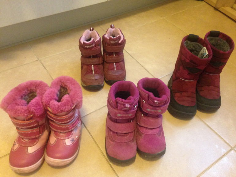 1. Сапоги зимние 24 размер Puuhtu (Финляндия), натуральная кожа, натуральный мех, в идеале, мех даже не примят, брала в детском мире, одеты один раз-было, как видите, много обуви этого размера - 2000 р.