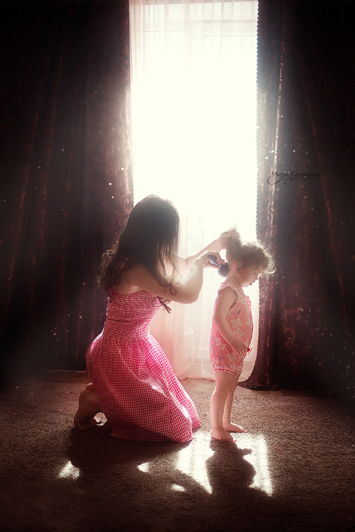 Небольшие зарисовки. Как я ее причесываю, как мы с ней обнимаемся и как она ловит мыльные пузыри (любит их очень), но на фото пузырик я заменила на птичку)))