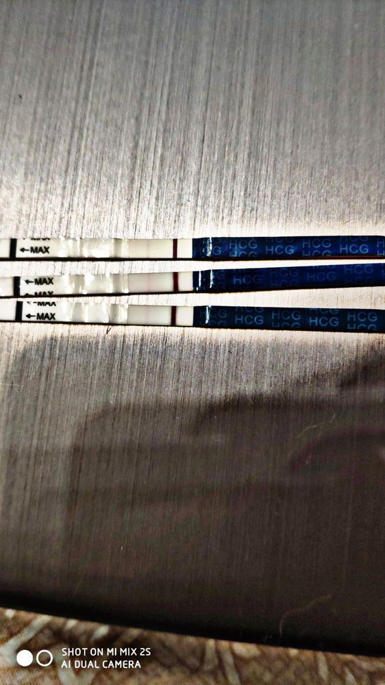 На первом фото утренний тест, на втором - в обед замочила. Сверху утренний + 2ой мамачек + эви. Вы видите полоски?
