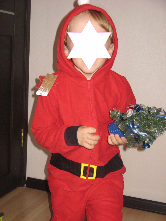 Костюм Санта-мальчик фирмы Matalan. Слитный костюм с капюшоном - колпачком. Впереди застежка-молния. размер 4-5л(104-110) - подойдет на 3-4г, 6-7л(116-122) 990руб