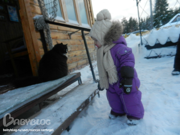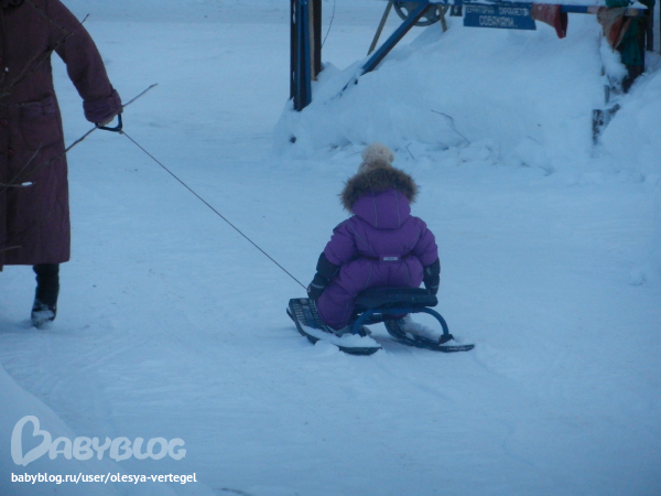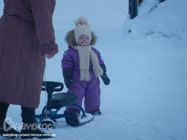Лера молодец, везде ходит как положено, мою фиг уговоришь пройтись по снегу. Начинает орать и психовать - не доросла еще до зимних прогулок :)))