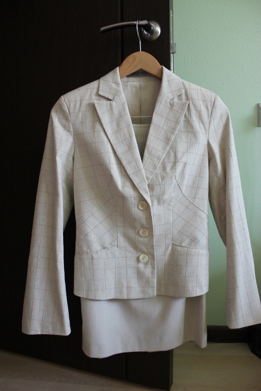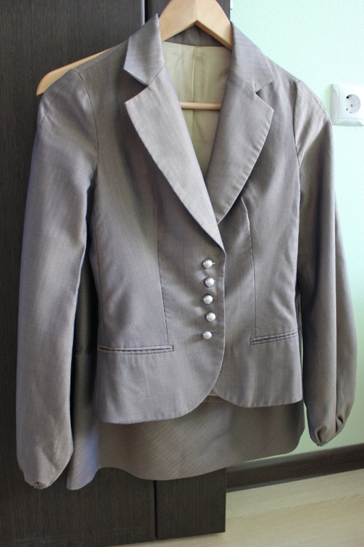 Костюм итальянской фирмы KI.MONO. Пиджак р-р 34(в груди - 38см, рукав от плеча 60см, длина по спинке - 55см), юбка р-р 36(талия - 34см, бедра - 46см, длина - 60см)