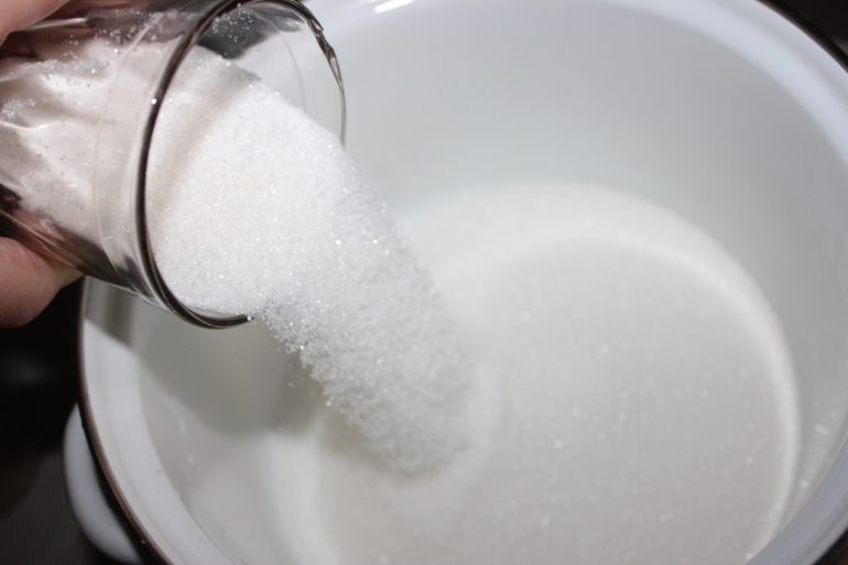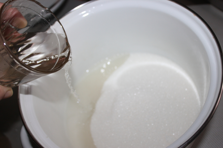 В кастрюлю насыпаем сахар(4 ст)