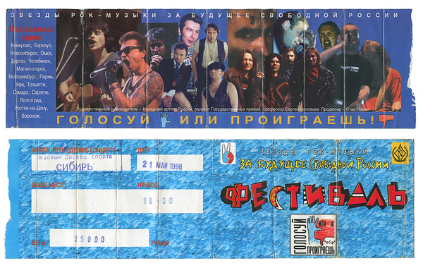 Первый раз как-то без музыки обошлось, а вот во второй не под музыку, а после музыки. "Голосуй, или проиграешь". Помнишь, может, эту акцию, эти гастроли могучей кучки наших рокеров по всей стране? Реклама по ТВ мощная шла.