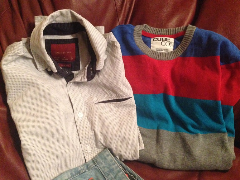 К джинсам могу отдать рубашку Спрингфилд, модель Слимфит. Р. Xs ( на рост 158-164) и джемпер Cube Co (158-164).