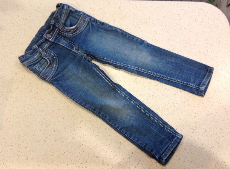 Брюки на 3 года. Ткань похожа на тонкую джинсу. В поясе резинка. По поясу 24, длина штанин 57/37. Цена 200.