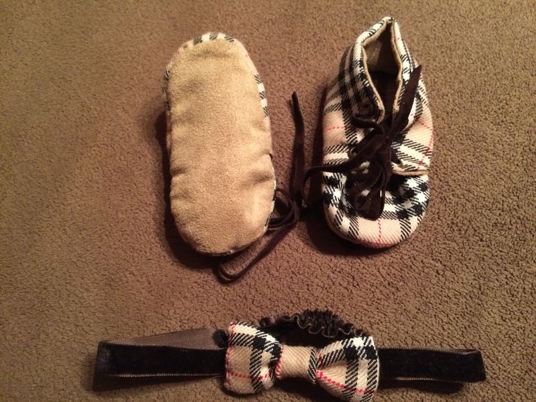 19) Комплект ручной работы на 3-6 мес., туфельки и ободок. Материал хлопок, подошва и шнурки замша. Цена 500р. Состояние новых.