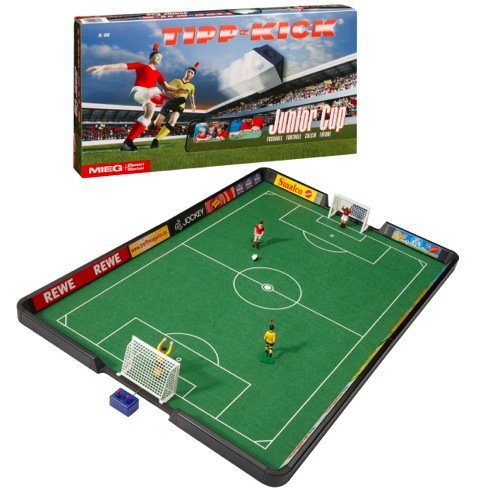 - Настольная игра детский футбол TIPP-KICK снабжена двумя раскрашенными вручную футболистами, каждый из которых представляет целую команду. Обычно фигурка выполнена из металла и одета в форму сборной какой-либо страны.