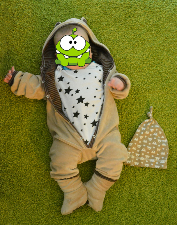 Дошила ботиносы к велюровому комбезику. Теперь полный комплект) Хотя, может, дошью полосатую шапулю, но нам подарили эту и она замечательно влилась в комплект.