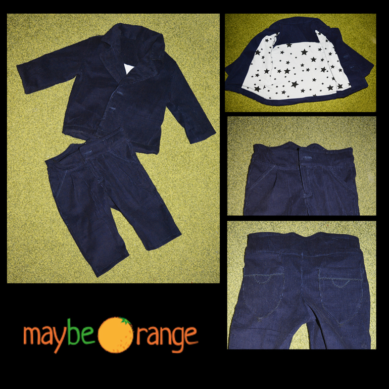 Пригласили меня тут на свадьбу. А за неделю оказалось что с Максом посидеть некому. Решено было пойти с Максом и сшить ему одежку посолиднее. Сшился пиджачок и брюки модные, ткань темно синий вельвет из бабушкиных закромов, высветляла фотошопом, чтоб виднее было, штаны с намтоящими карманами и ширинкой на змейке, все как у взрослых) сегодня с утра пуговки поставила. Планировала еще рубашку-бодик и красную бабочку. Но вчера оказалось, что мама таки может с ним посидеть. Так что куда теперь оно? =( будем считать, что опробовала выкройку. Чиносы сидят здорово, шьются легко. Но, из старых тканей таки плохо шить, вельвет даже оверлоченный сыпется и ширина у него метр х__х. Следующие буду таки из современных тканей шить.
