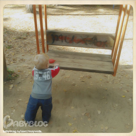 Качель для двоих. Ой, обманет она тебя (мне так папа в детстве говорил)... Ну в этот раз всё обошлось. Куда-то сбегали, слазили, покатались, поползали...
