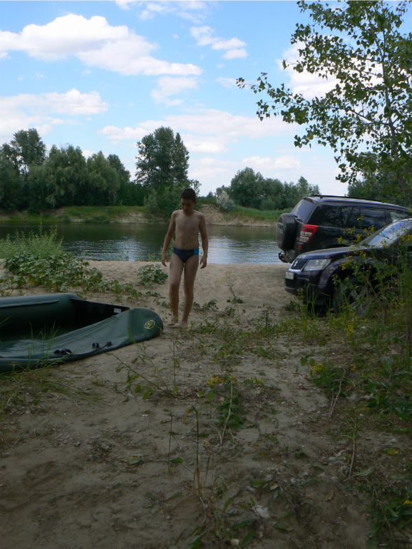 Переправившись через понтонный мост (как-то боязно было..), ждем папу.