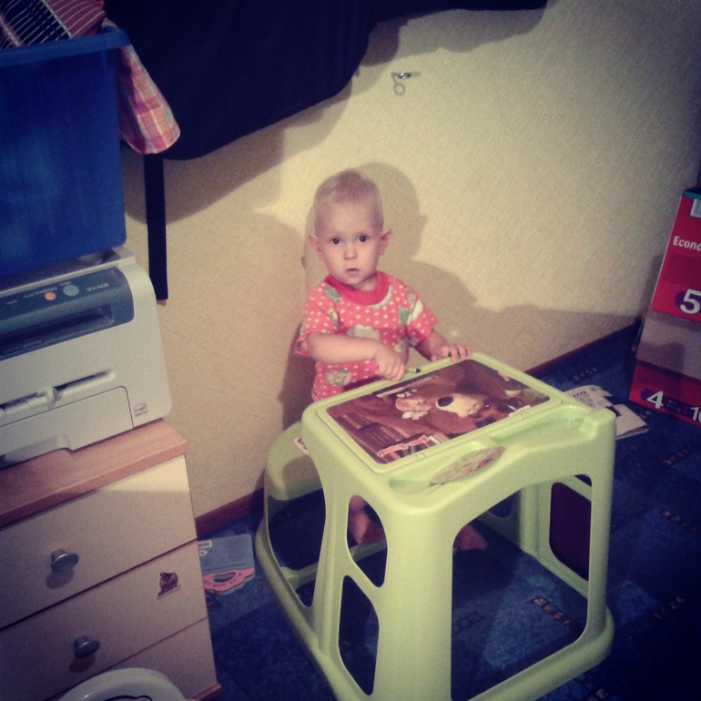 Ну вот я тоже про это подумала. Я видела типа детский стол со стульчиком, но все равно высоковато. А тут получается низко, все вместе, я к стеночке приставила — назад не упадет. и вообще — прикольный такой)))) Крышечка, внутри типа пенальчика, наклейка с любимой Машей))))