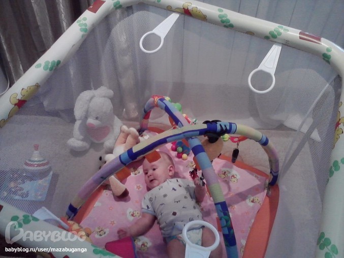 И на полу на матрасике, и на кроватке, и на диване, и у папы на коленях.....