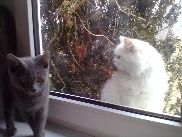 ...Или понаблюдать за котом. Это наш кот Ежик. к нему как раз пришел в гости сосед,гулять зовет)