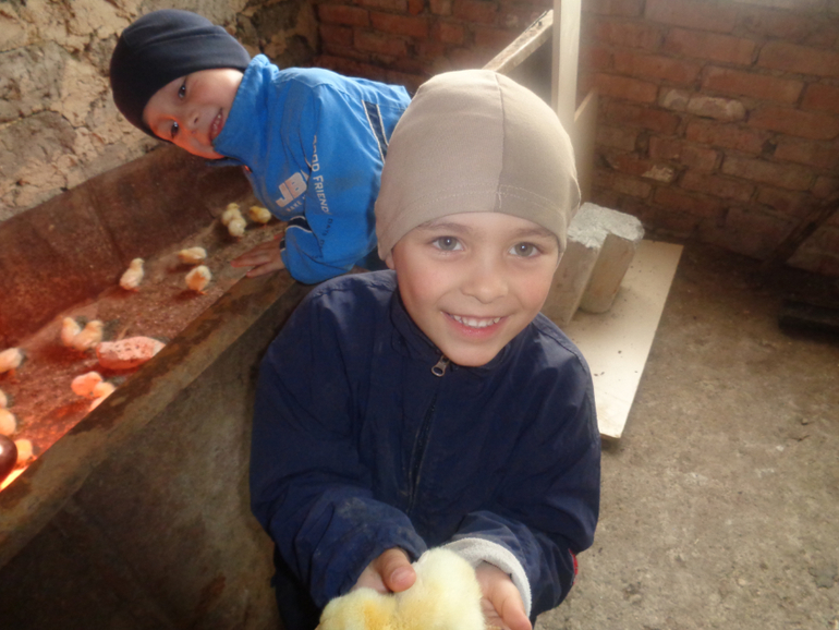 мальчишки с цыплятками прекрасны! такие счастливые!
