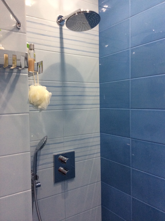 Ну и наш любимый душевой уголок. Сфотографировать тяжело - ширина помещения не позволяет.