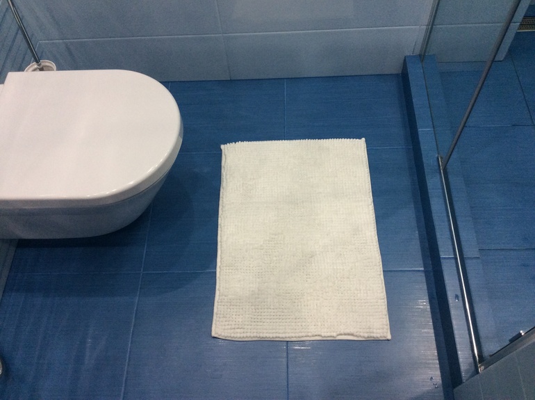 На полу икеевский коврик, вернее его половина. Я его разрезала, теперь у меня 2 коврика. Очень они мне нравятся - мягкие и хорошо влагу впитывают
