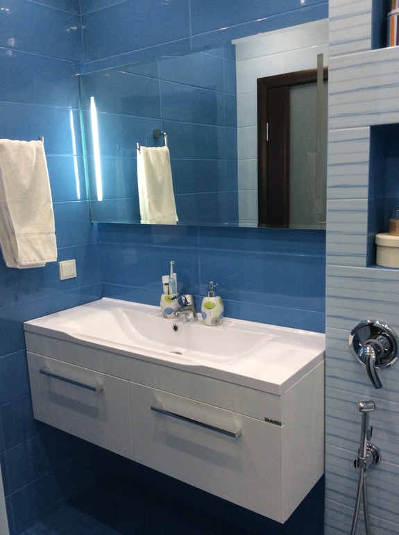 Основными требованиями при планировании ванной для нас были: большая раковина, обязательно подвесная, подвесной унитаз, и вообще отсутствие каких либо предметов на полу для удобства уборки, ну и душевой отсек (мы с мужем не любим принимать ванну).