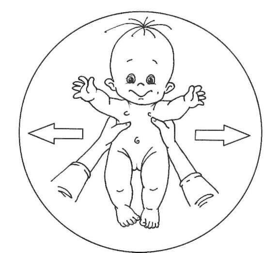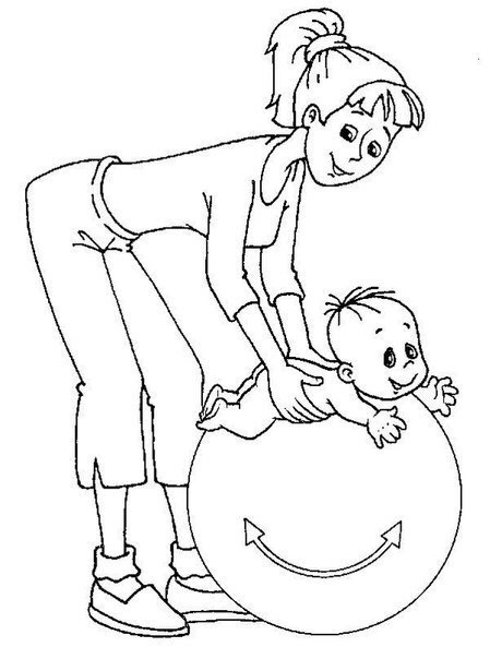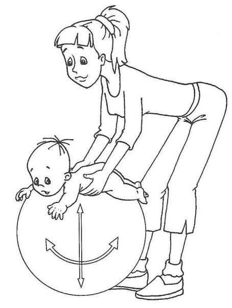 Внимание! Во время занятий на мяче запрещается тянуть или удерживать ребёнка за кисти (ладони) или стопы. Это поможет вам избежать травм.