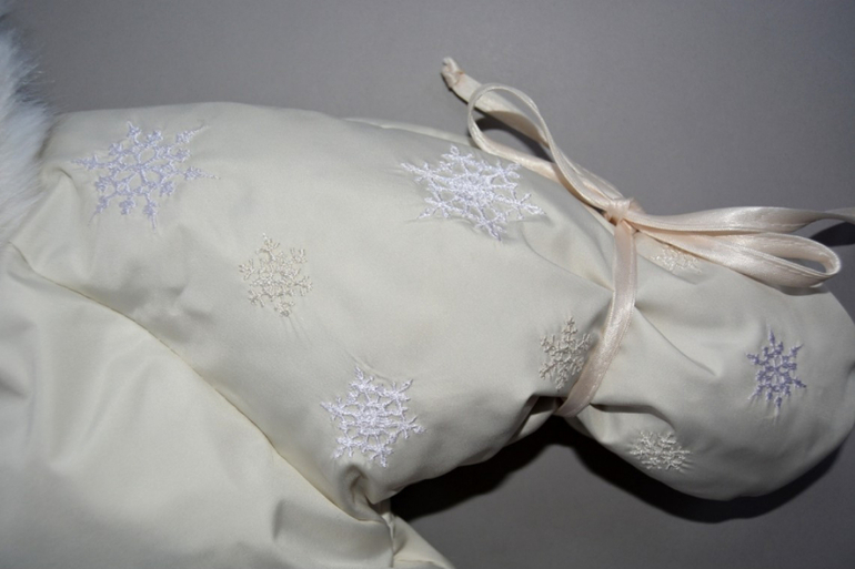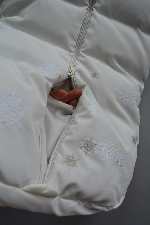 Конверт на выписку зимний утеплён - элитным гусиным пухом, отделка капюшона выполнена искусственным мехом. Удобная конструкция. Имеет сзади технологическую прорезь под ремень автокресла, прикрытую от холодного воздуха клапаном. Молния имеет возможность нижнего открывания под ремень автокресла. Зимний конверт украшен машинной вышивкой.