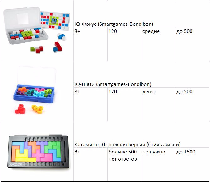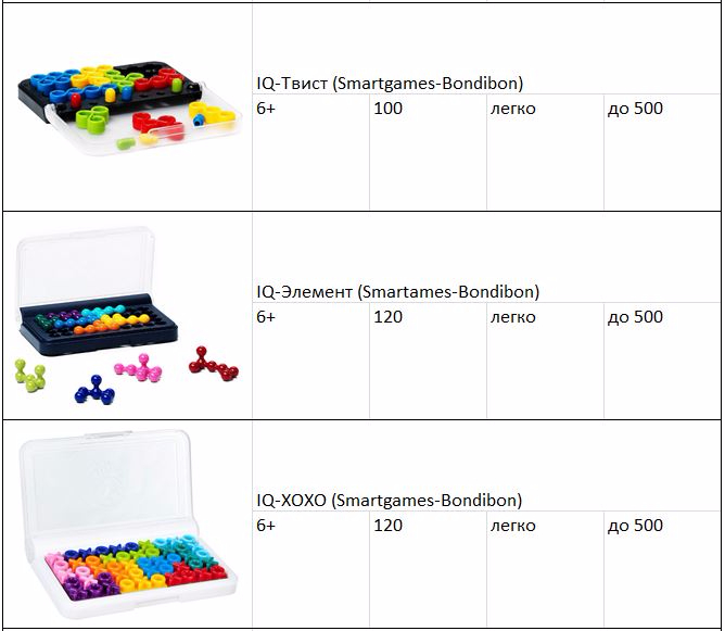 Шикарные компактные головоломки на заполнение поля. Самые простые - те, где есть какие-то ориентиры для заполнения поля: пеньки (IQ-Твист), выемки на поле (IQ-ХОХО), воротца (IQ-Блок) или направляющие (IQ-Конфетки). Посложнее те, где деталей много, а ориентиров нет: IQ-Спутник гения, IQ-Элемент, IQ-Колечки, IQ-Шаги. Новинка серии - IQ-Фокус. Смысл головоломки в том, чтобы не только поместить все детали на поле, но воссоздать нужный цветовой узор в его центре.