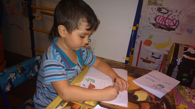 Развитие сынулиТиграша решил писать книгу. Иллюстрирует и сочиняет сам, иногда спрашивает как написать то или иное слово.