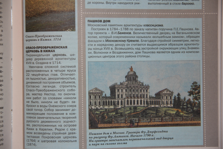Архитектура разных веков, а на цветных блоках характерные представители этого века.