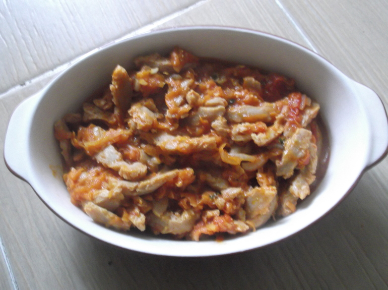 Это первое мое блюдо из соевого "мяса". Не люблю я такие штуки и считаю их бесполезными в еде. Но такое блюдо отлично для тех, кто на переходном периоде в питании. Или в системе кризиса ищет что-то по-дешевле и/или посытнее.