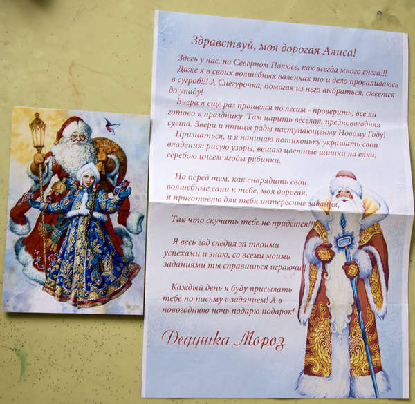 Алиса с июля терпеливо ждала Новый год и Деда Мороза. И вот, наконец, дождалась первой весточки от него!