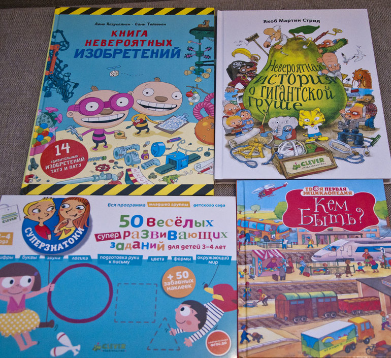 "Книга невероятных изобретений" и "История о гигантской груше" - книги на развитие у ребенка воображения. Что можно сделать с обыкновенной грушей, если она очень большого размера, и всякие хитроумные несуществующие изобретения для счастливой жизни. Можно читать, можно рассматривать, можно фантазировать самому.