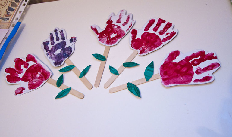 Цветочки из ладошек. Алиса сказала, что раздарит своим учителям ))
