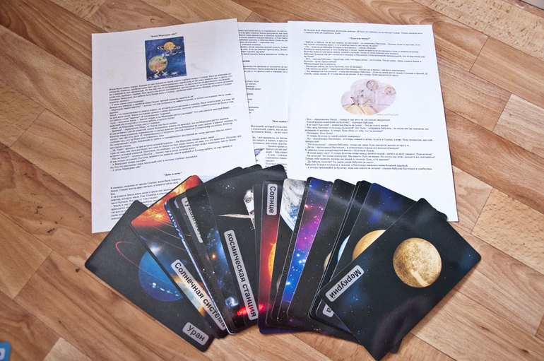 Для расширения кругозора, кроме книг, читали геосказки с портала Солнышко. Подкрепляющим материалом к тексту служили карточки МнЛ серии Космос