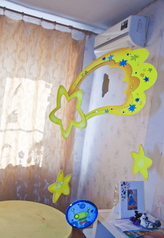 Для украшения комнаты повесили мобиль - надо же куда-то лететь нашим космонавтам!
