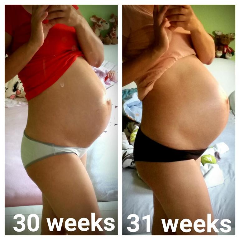 Да уж пузень так пузень. Разница с каждой неделей все ощутимей. У меня тоже такой же остро выпирающий вперед. Мальчуганы внутри))))