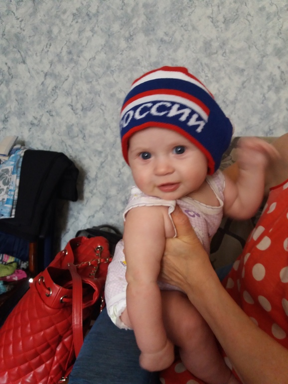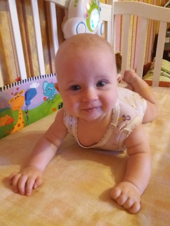 В поликлинике еще не были, рост и вес пока не знаю точно, но судя по одежде (68 размер впритык), рост около 67-68, а вес (взаешивались у аллерголога) 7100.. Прибавка будет около 2-3 см в росте, а в весе около 400 гр. (Хотя неделю назад Саша весила 7300...сброс веса - результат перехода на другую смесь, но обо всем по порядку..) Наши умелки! За месяц Сашенька научилась переворачивается со спины на живот через обе стороны, цепляется за предметы мебели и пытается сесть (мышцы спины пока не готовы сидеть, а голова не согласна больше лежать))) около недели назад Саша стала ночью спать на животе... И одновременно перестала просыпаться на покушать... Теперь мы спим с 22:00 до 7:00 практически не просыпаясь (может пару-тройку раз начать возиться, я даю пустышку и она сама тихонько снова засыпает. Так что скоро, наверное, будем уходить от СС (ттт))). Атопический дерматит наш в самом разгаре (( перешли на Нутрилон пепти гастро...смесь конкретно не вкусная...Саша отказывалась от нее сначала ..отсюда и потеря веса.. Сейчас начала привыкать немного... обнадеживает, что аллерголог ее выписала только на время лечения. Потом снова вернемся к премиуму. Ну и на поселок немного Сашеньки)) (крутится Сашка непереставая, поэтому фотки мутноватые))
