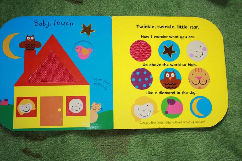 В методическом плане книжки этой серии, как мне кажется, отличаются богатством возможностей, как для игры, так и для обучения, с малышом можно развивать моторику, трогая разные текстуры и вырубку, с подросшим ребенком - учить цвета и формы, понятия большой-маленький, высокий и низкий, искать части картинки на целом. запоминать простые стишки на английском. Да и просто присесть попить чаю с плюшками. пока чадо довольно гулит и щупает книжку - ни одной маме отдых точно не помешает.