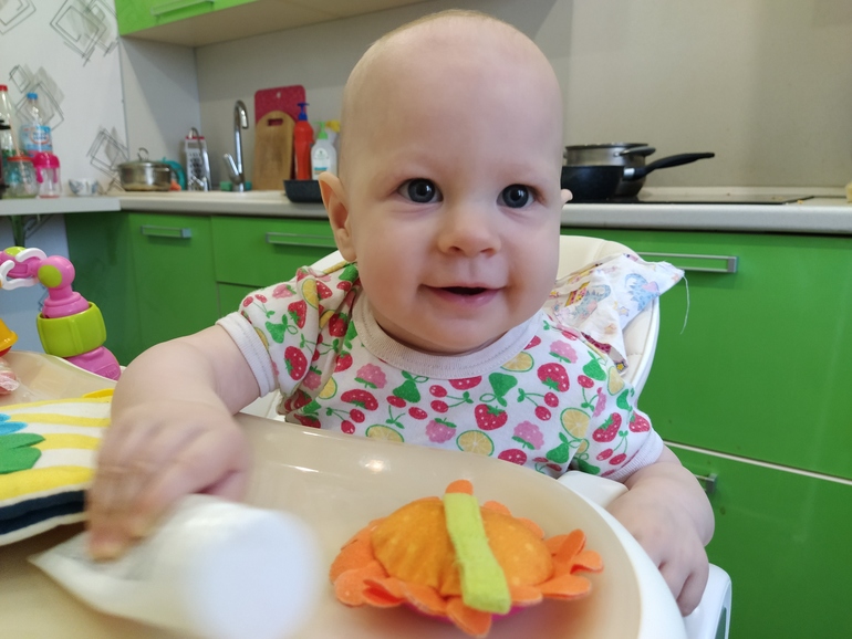 ✏️ Алина ни в какую не ест кусочки, рвотный рефлекс вроде прошел, теперь просто отказывается рот открывать, даже пробовать не хочет. А вот печенье она уже знает как выглядит, его ест.