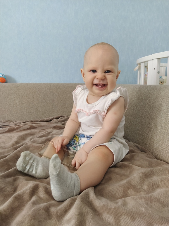 ✏️ Сама села, теперь играет сидя. Я точный день не знаю, просто однажды заметила, что играет сидя, хотя обычно лёжа. С тех пор отрабатывает принятие сидячего положения с четверенек.