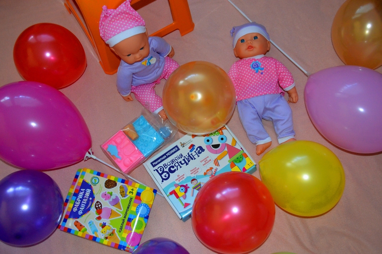 Утром нашу девочку ждал сюрприз - ночью мы украсили комнату шарами и оставили подарки.