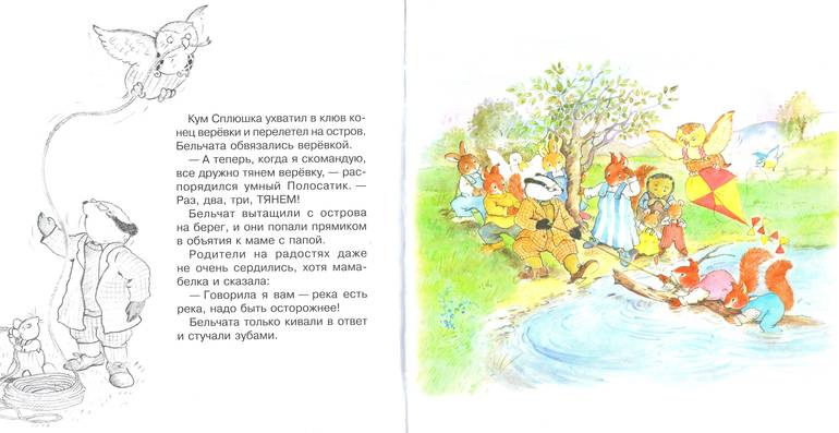У меня (как у взрослого человека) есть небольшие замечания к сюжету - уж слишком долго искали пропавших бельчат. НО... это ведь сказка! И для трехлетнего ребенка такой поворот событий кажется захватывающим и интересным! В целом текст изложен очень хорошо, легко и увлекательно.
