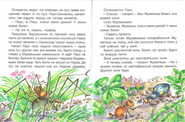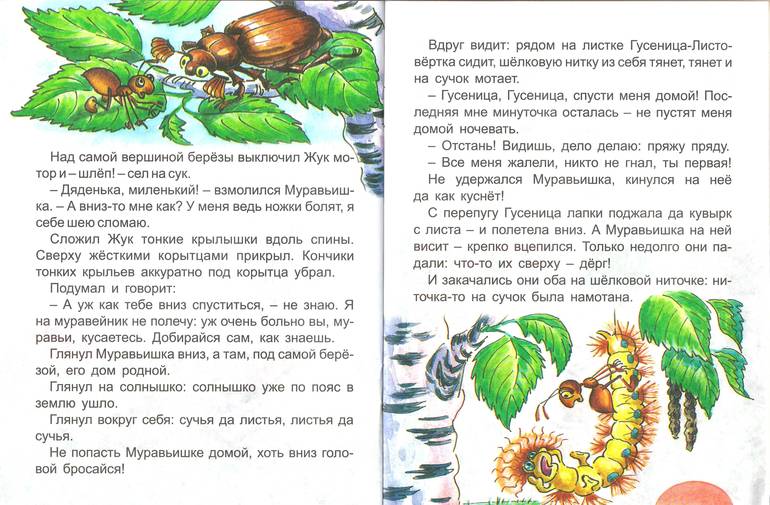 Сюжет этого рассказа, наверное, известен всем с детства, если не по книге, так по замечательному советскому мультфильму, в котором Муравьишку случайно занесло далеко от дома. Падая, он отшиб себе ножки (помните это: "У него ноги... А ему домой..."))) и все насекомые, кто как мог, помогали ему добраться к муравейнику до захода солнца.