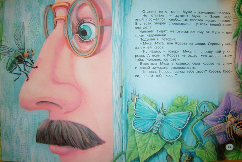 Во-вторых, текста на разворот много, а картинок мало, да и нарисовано отнюдь не всё, что есть в сюжете. Ну и в-третьих, сами иллюстрации Олейникова. Герои сказок не ми-ми-ми-пушистики с добрыми наивными глазками. Они все необычные и харАктерные, иногда даже слишком достоверные. Столько эмоций прописано на мордах - радость и счастье, страх и ужас, грусть и печаль. Злодеи все у-у-у-ххх! настоящие да кровожадные!