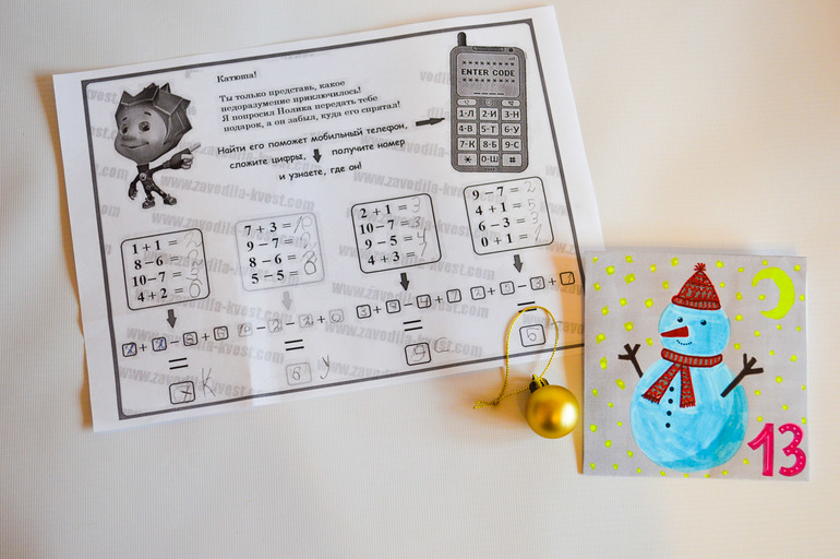Дедушка Мороз попросил передать Нолика подарок для Катюши. А Нолик забыл, где его спрятал. Только разобравшись со сложным механизмом фикси-телефона мы смогли расшифровать место тайник.