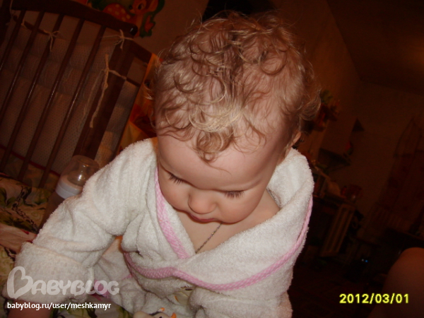 После купания немного кудрявимся, если честно я думала она у меня кудрявая будет, (в меня), а она так...еле еле))))))))