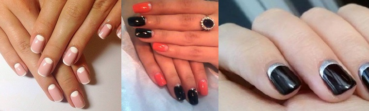 Лунный маникюр на пике своей популярности. Приветствуются эксперименты с контрастным сочетанием основного и акцентного цветов, но предпочтение опять-таки рекомендуется отдавать приглушённым оттенкам красного, цветам палитры «nude» и чёрному.