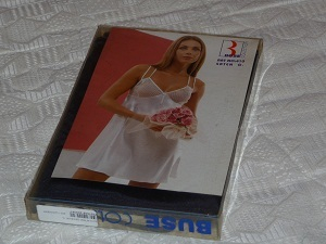 комбинация шелковая б/у темно-синего цвета с ажурной линией груди. в коробке.