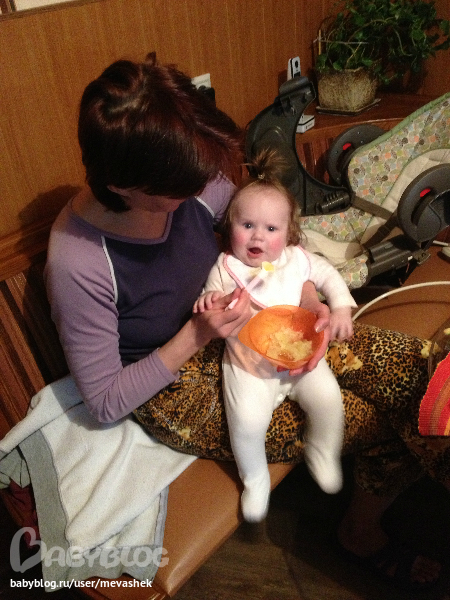 Едим прикорм. Ясь не доволен